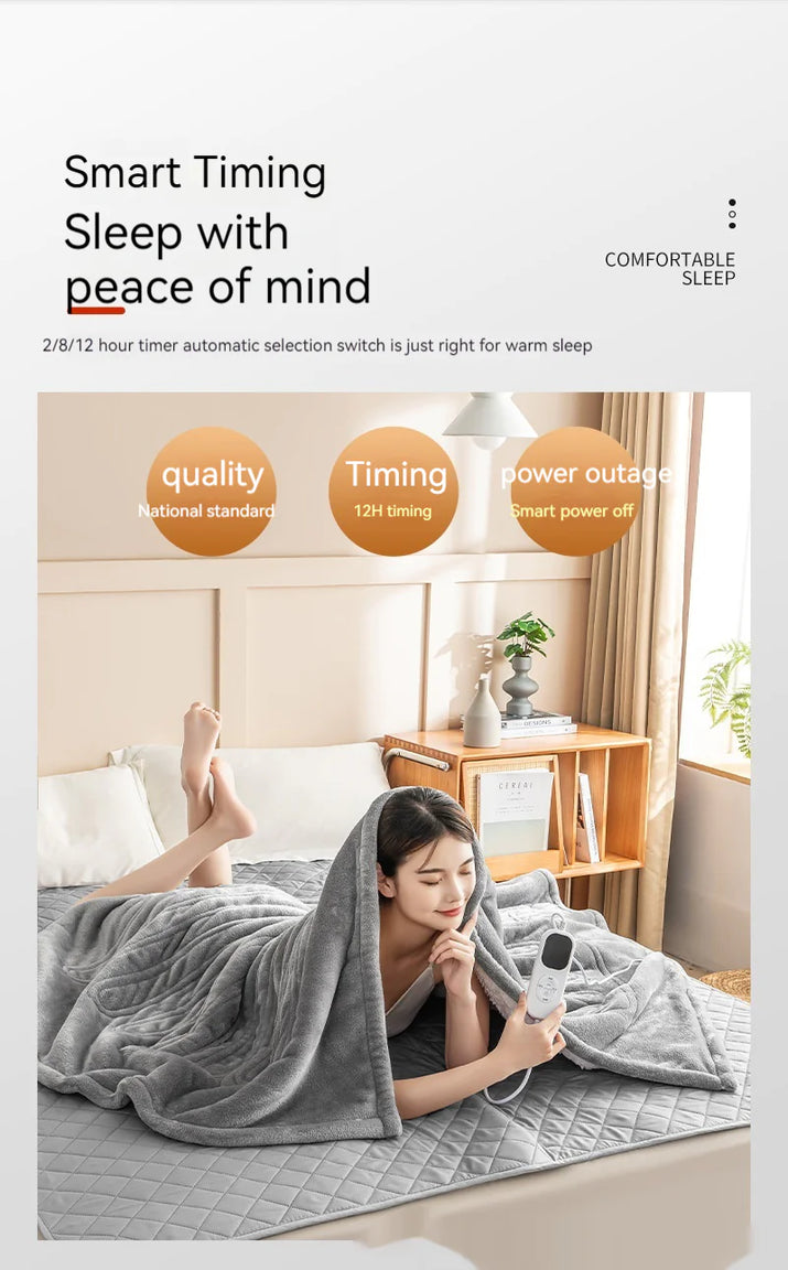 Angetrieben von einem 220W-AC-System erwärmt sich diese elektrische Decke schnell und effizient. Schließe sie einfach an, und innerhalb weniger Minuten erlebst du eine beruhigende Wärme, die deine Entspannung und deinen Komfort den ganzen Tag über steigert.