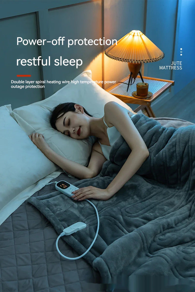 Erlebe unvergleichliche Wärme mit unserer luxuriösen elektrischen Heizdecke, gefertigt mit einer weichen Lammwoll-Außenschicht, die Stil und Komfort in deine Wintertage bringt.